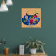 Teacup Art - Aus einer originalen Aquarell Vintage Teacup Art Illustration der Künstlerin Sacha Grossel. Diese farbenfrohe und lebendige Teekultur würde Ihre Zuhause, Küche oder Ihr Restaurant aufheitern. Es zeigt einen blauen und roten Blumenteakup auf einem individuell anpassbaren beigen Hintergrund.
