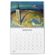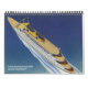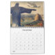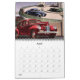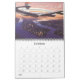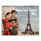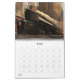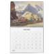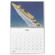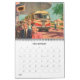 12 Monate Vintager Illustrationskalender mit Fahrszenen wie Kreuzfahrtschiffen, Flugzeugen, Zügen, Autos und einem Busdepot.