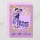 lila und blaue Vintage Illustration mit japanischem Mädchen und Puppen. hübsche Collage mit Vintagen Komponenten mit einem niedlichen Mädchen in einem Kimono, eine Babyschwester oder einen Bruder auf ihrem und sholders zurück tragend und mit einem Schal, der um ihren Kopf eingewickelt wird, betrachtet unten drei japanischen Puppen, die auf dem Boden gegen die Wand, allen in der blauen Farbe der China und Malvenfarbenhintergrund, mit reizenden rosa Blüten an den Ecken in einer Collagenart sitzen. Vintage Mischmedien mit einem herrlichen kleinen japanischen Mädchen und ihren Geschwister nahe bei drei Spielwaren, alle in den blauen und malvenfarbenen Farben der China.