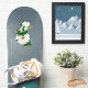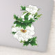 Aufkleber in einer Vintagen japanischen Abbildung von großen, weißen Peronenblüten mit grünen Blätter, auf einem weichen grünen Farbverlauf, digital verbessert und farbig
