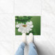 Doormat in einer Vintagen japanischen Illustration großer, weißer Peronenblüten mit grünen Blätter, auf einem weichen grünen Farbverlauf, digital verbessert und farbig
