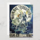Vintage Abbildung Art Nouveau Werbeplakat Manufacture Roubaisienne, c. 1900, unbekannter Künstler. Dieses Liebe- und Romantik-Werbeplakat zeigt einen geflügelten Pierrot und seine Pierrette romantisch über den Nachthimmel auf dem Fahrrad. Sie fahren mit ihren antiken Fahrrädern auf Wolken mit einem großen Vollmond hinter ihnen und Sternen am Himmel.
