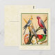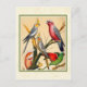 Postkarte mit digital gesäubertem und verbessertem Vintage-Bild männlicher und weiblicher Cocktails, Rosencockatoo, Scaly-Breasted Parakeet und Leadbeaters Cockatoo, mit hellgelben Pergament-Rahmen und Rückseite. Farbige Darstellung der Naturgeschichte von W. Rutledge aus dem Illustrierten Kanarischen und anderen Käfigvögeln, 1878.