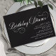 Festliche Einladungen zum Geburtstagsessen mit den Worten "Geburtstagsessen" in Vintager Kalligraphie-Schrift. Ihre Veranstaltungsdetails befinden sich in der unteren rechten Ecke. Weißer Text auf kontrastierendem schwarzem Hintergrund.
