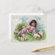Antikes Postkartendesign mit jungen Mädchen und Kaninchen.