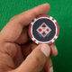 Poker Chips mit zwei anpassbaren Texten und die Farben der Spielkarten in einem Vintagen Stil inklusive Herz, Pik, Diamanten und Kleber.