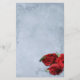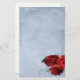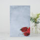 Elegantes, Vintag kaskadenblaues Hochzeitsstilleriedesign mit dekorativen Eckrollen oben und unten mit einem Foto von drei rote Rosen in der unteren Ecke. Der Hintergrund erhält eine strukturierte Grunge-Anwendung für ein antikes Papierlook. Dieses Design kommt in mehreren fertigen Hintergründen. Dieses Design kommt auch auf viele andere Schreibwaren Produkte, um Anzug alle Ihre Hochzeit Set benötigt.