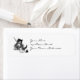 Niedliche Vintage, schwarz-weiße Ätzung einer Katze, die mit einer Feder schreibt. Die Katze konzentriert sich so stark, dass sich seine Zunge herausklingt. Die perfekte Art, Menschen lassen, dass Sie Schriftsteller sind.