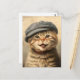 Lächelnde braungelbe Tabbierkatze mit einem Hut auf dem Kopf. Vintage niedliche Katzenmalerei.