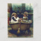 Charmantes Vintages Farbbild des "Good Ship Clothes Basket" um 1888. Beschildert Kinder beim Spielen mit einem Wäschekorb als Boot mit Strohbesen und Tabbykatze.
