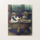Charmantes Vintages Farbbild des "Good Ship Clothes Basket" um 1888. Beschildert Kinder beim Spielen mit einem Wäschekorb als Boot mit Strohbesen und Tabbykatze.