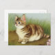Postkarte mit einer Vintagen Kätzchen-Abbildung. Ein niedliches Tischkätzchen, das sich in einem Blumengarten versteckt. Ein perfektes Geschenk für Katzenliebhaber und Viktorianische Kunstsammler.