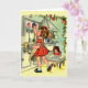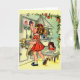 Retro / Vintage Note Card. Liebliches kleines Mädchen, das ein Essen für ihre Puppe vorbereitet! Perfekt für jeden Anlass!