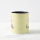 Königinbienen-Tasse, die eine Vintage Artbienenillustration mit Streifen im hellgelben und personalisierten Namen kennzeichnet.