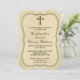 Vintage Kreuzheiligkeits- oder Bestätigungseinladungen. Diese Einladungen können für jedes heilige Ereignis angepasst werden, inklusive Bekundungen, Christenings, Kommunionen, Taufen und vieles mehr. Fügen Sie Ihre benutzerdefinierte Formulierung mit dem Abschnitt "Diese Designvorlage bearbeiten" hinzu oder klicken Sie auf die blaue Schaltfläche "Anpassen", um den Schriftart und die Farbe zu ändern, oder um ein Foto oder eine zusätzliche Formulierung auf der Rückseite der Einladung hinzuzufügen.