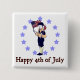 Glücklicher 4. Juli Vintage Kunst in antiken kolonialen Briefen und ein Junge mit roten Feiertagsfeuerwerk und einer US-Fahne, umgeben von 13 blauen Sternen.