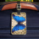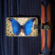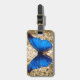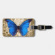Gepäckanhänger für Naturliebhaber oder Schmetterlingsliebhaber! Entwurf eines schönen, großen, blauen Monarchmitternachtsschmetterlinges gegen einen Vintagen Damastmuster-Arthintergrund. Dieser Kunstentwurf zeigt die natürliche vibrierende Farbe des Schmetterlinges und hat retro Vintages Gefühl.