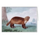 Ein pelzartiger dunkles Braun Wolverine trägt seine scharfen Zähne in der Vintagen Illustration. Das kleine aber heftige Tier wird nach einem grasartigen Hügel mit Bäumen und hellblauer Himmelillustration im Hintergrund gezeichnet.