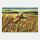 Vintage Darstellung der landwirtschaftlichen Gestaltung mit einem Bauer, der eine kombinierte Ernte Weizen in den Feldern seines Hofes im Mittleren Westen. Zu den Kulturen, die der Bauer anbaut, zählen Weizen, Hafer, Roggen, Gerste, Mais oder Mais, Sojabohnen und Flachs oder Leinsamen. Der hinter der Maschine verlassen Strohabfall wird entweder zerkleinert und auf dem Feld verteilt oder für füttre und Bettwäsche für sein Vieh geschliffen.