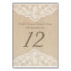 Vintage Leinwand und Spitzenschauspiel Hochzeitsst Tischnummer