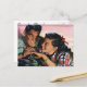 Einfach anzupassen Hochzeit speichern Sie das Datum Postkarten. Fügen Sie einfach Ihre Infos hinzu! Vintage Illustrations-Liebe und Romantik-Bild mit jungen, glücklichen Teenagern, die ihre stetig anhaltende Liebe versprechen, mit einem viel versprechenden Klang beim Musikhören ihres Plattenspielers. Niedliche und romantische Verlobung. Der Junge steckt sich einen Verlobung-Ring auf den Finger.