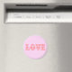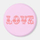 Rosa Hintergrund mit dunkelrosa Vintager Schrift, die das Wort "Liebe" ausdrückt. Verziert und sonderbar!
