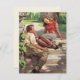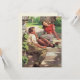 Vintage Illustrations-Liebe und Romantik-Design mit einem niedlichen jungen Paar, das in der Schule flirtet. Die Teenager sitzen mit ihren Lehrbüchern auf einigen Stufen im Schatten des Baumcampus.