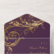 Dieses elegante Ganze in einer Hochzeitseinladung verfügt über einen Vintagen goldblühenden Damast auf einem lila Hintergrund mit Ihren Hochzeitsdetails zu personalisieren in Imitats Gold Kalligraphie-Skript. Glückwunsch auf Ehe und Hochzeit. Entworfen von Susan Coffey.