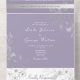 Eleganter, Vintager, grauer und lavender lila Alleineineinladung mit Imitaten silberblümlicher Spitze, Monogramm an der oberen Klappe, moderne Kalligraphie-Schrift und Bild des Paares. Fügen Sie Ihr Foto, Ihre Hochzeitsdetails und uAwg.