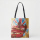 carry your essentials in style with this iconic london tote bag featuring a vintage red double decker bus and the historic tower bridge. the design is centered within a circular union jack flag and finished with a stylishly distressed grunge texture for a retro feel. this durable reusable bag is perfect for grocery shopping, a day at the beach, or as a chic travel carry-on. it makes a wonderful gift for anglophiles and eco-conscious travelers who want to showcase their love for british culture and the timeless charm of the united kingdom.