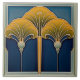 Die Vintage Fan Motif Keramik Tile, ein atemberaubendes Beispiel für Art-Déco-Eleganz, gedruckt von Zazzle. Diese flache Keramik ohne Prägung zeigt ein ausgeklügeltes Design stilisierter Fanmotive in kräftigen Blau-, Gold- und Grüntönen. Die komplizierten Linien und die kühnen Farbkontraste verkörpern den zeitlosen Charme der Art-Déco-Ära und machen diese Kachel zu einer perfekten Ergänzung zu jedem Raum im Inneren. Ideal für Küchenbacksplashs, Badezimmerwände oder dekorative Installationen, wird diese Kachel Ihrer Wohngestaltung eine Touch Vintagen Glamours und künstlerischen Flairs hinzufügen.