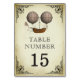 Coole Steampunk Thema Hochzeit Tischnummer mit einem schönen Steampunk inspiriert Heißluftballon vor einem Vintagen Pergament Hintergrund.