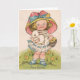 Vintage-Mädchen mit Ostergrußkarte mit Hase Karte