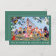 Die Abbildung auf dieser Einladung wurde aus einer Vintagen Postkarte adaptiert. Es zeigt eine Gruppe von gekleideten Tieren rund um ein Maypol.