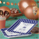 A modern yet retro-inspired beach bachelorette paper plates featuring navy blue and white stripes for a crisp, nautical feel. The main heading reads “The Bach Club” in a striking blend of modern sans-serif and vintage script typography, balancing minimalist clarity with classic elegance. At the center, a hand-drawn palm tree illustration anchors the design, flanked by two clam sea shells on each side—adding a touch of old money coastal charm and luxury seaside vibes. The overall aesthetic blends classic luxury with minimalist design, evoking a timeless yet fresh look that feels perfect for a chic beach celebration.