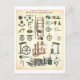 Diese Postkarte ist eine Reproduktion eines Vintagen Bildungspakets, das Bewegung und Maschinen zeigt. Das Wissenschaftsdiagramm ist Teil der Serie "Illustrations of Natural Philosophy" von James Reynolds in London im Jahr 1850.