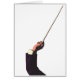 Vintages Illustrationsmusikdesign mit Arm und Hand eines Dirigenten, der einen Stab hält, der bereit ist, eine klassische musikalische Performance zu steuern. Auf einem roten Hintergrund.