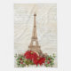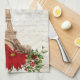 Ein großartiges Vintages Eiffelturm-Bild in Sepia mit herrlicher Vintager, heiliger Vegetation und roten Poinsettias, die eine weiche Creme und eine Elfenbeinküche mit Vintager Notenmusik schmücken, machen ein schönes französisches Weihnachtsküchentuch aus Paris.