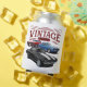 Dies ist ein zeichn eines klassischen Autos, das mit Kreiden und Markern erstellt wurde, mit digitalem Hintergrund.