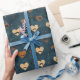 Vintage Mustache Heart Pattern on Denim Blue Geschenkpapier