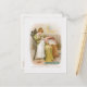 Sentimental Vintag Mother's Day Grußkarten-Abbildung mit jungen Viktorianischen Müttern in gelbem Gewand, die ihr Kind halten. Kunst von Maude Goodman. Zurück zeigt bearbeitbare Muttertagsgrüße, Textfelder und ergänzende Grafik.