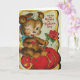 Retro / Vintage Muttertagskarte. Ein hübscher kleiner brauner Bär sitzt auf einem Button Kissen mit einer Rose für die Mama! Nur für dich, Mutter, am Muttertag!