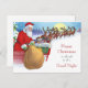 Die Vorderseite dieses lustigen Holiday Gruß Postkarte hat ein wunderschönes altes Bild des Weihnachtsmanns bereit, einen Kamin am Heiligen Abend hinunter zu klettern. Sein Schlitten und sein Rentier sind für ihn gewartet, während ein Vollmond aufsteigt. Der Text sagt "Frohe Weihnachten für alle und für alle eine gute Nacht". Die Rückseite hat zwei benutzerdefinierte Textfelder.