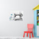 Ideales Plakat für ein Nähzimmer. Hübsches Plakat mit einer alten Nähmaschine auf einem hellgrauen Hintergrund und einigen zarten Blumen.