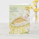 Senden Sie Ihre herzlichen Glückwünsche mit dieser skurrilen Vintagen Baby Gratulationskarte. Das Bild zeigt ein süßes Baby in einer schönen Bassinette mit einem gelben Bogen, Satin und Blumendetails. Das Gesicht und die Augen des Babys sind sehr ausdrucksstark und wunderschön bemalt. Sie können ganz einfach Ihre eigenen Glückwünsche und Babynamen eingeben. Sie können den Stil, die Farbe, die Größe und die Platzierung des Schriftartes weiter bearbeiten, wenn Sie möchten.