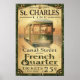 • This high-quality retouched illustration is a vivid reproduction of a classic pre-1929 advertising poster. This colorful artwork features an iconic olive-green streetcar on the tracks and prominent typography announcing service to the French Quarter, rendered in a striking, distressed Art Nouveau style.