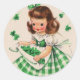Vintage Niedliche Girl Kleeblatt St Patrick's Day Runder Aufkleber