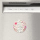 Ein Magnet mit elegantem und nostalgischem Design. Musikblatt mit einem großen rosa Herz und rosa Rosen und Wildblumen am Rand.