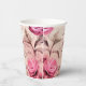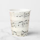 Papiertassen mit elegantem und nostalgischem Design. Musikblatt mit rosa Rosen an den Rändern.