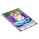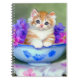 Notebook mit orangefarbenem, weiß gestreiftem Kätzchen. Die großen blauen Augen des Kätzchens blicken hervor, da es in einer blauen Schüssel mit rosa und violetten Blumen sitzt. Ein tolles Geschenk für Katzenliebhaber und Viktorianische Kunstliebhaber!